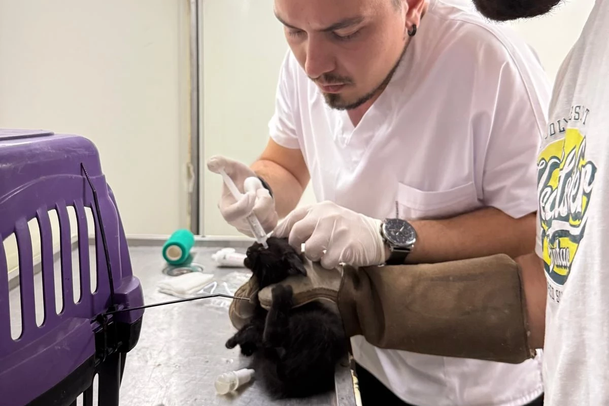 İZMİR (İGFA) - Ateş savaşçıları, yalnızca alevlere karşı savaşmıyor. Yangın bölgesinde mahsur kalan tüm canlıların yardımına koşan ekipler, alevlerin arasında kalan; at, köpek, kuş ve kedi gibi çok sayıda hayvanı da kurtardı. Veteriner İşleri Dairesi Başkanlığı ekipleri yangından etkilenen hayvanların tahliyesini sağlayarak, tedavilerini yaptı.