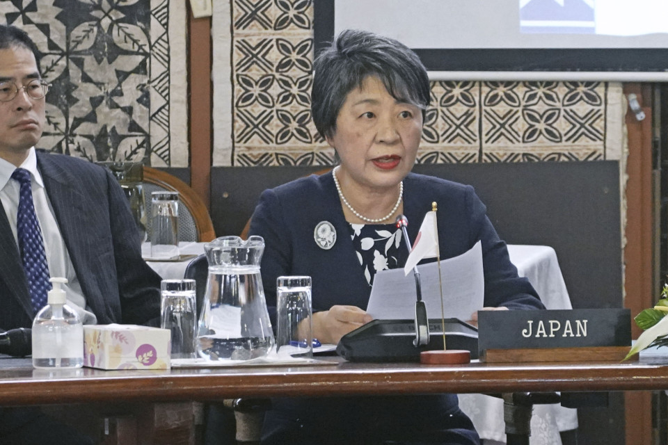 Japonya Dışişleri Bakanı Yoko Kamikawa, 12 Şubat 2024'te Fiji'nin başkenti Suva'da düzenlenen bakanlar toplantısında konuşuyor. (Kyodo)