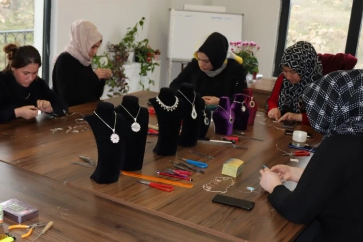 Merkeze gelen kadınlar bir yandan meslek öğrenirken diğer yandan üreterek aile ekonomilerine katkıda bulunuyor.