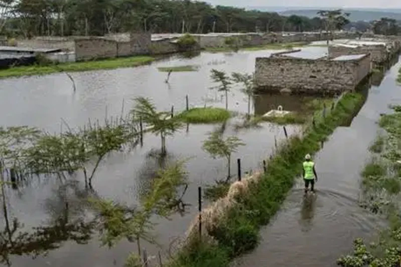 Nakuru eyaletine bağlı Naivasha kentinde bulunan Kihoto köyü, Naivasha Gölü’nün taşmasıyla sular altında kaldı.