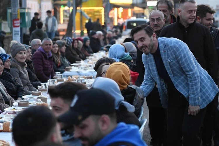BURSA (İGFA) - Kanuni Caddesi’nin kapatılması ve masa düzeninin kurulmasıyla geleneksel sokak iftarının yaşandığı programda Karagöz & Hacivat, semazen gösterisi ve ilahi dinletileri de yapıldı. Kestel Belediye Başkanı Önder Tanır, iftar programına eşi Oya Tanır ile birlikte katılım sağladı. Tüm vatandaşları gezerek Ramazan ayını kutlayan Başkan Tanır, çocuklarla da bol bol fotoğraf çektirdi. İftar saatiyle açılan oruçların ardından dua yapıldı. İftarın ardından konuşan Kestel Belediye Başkanı Önder Tanır, şu sözlere yer verdi.