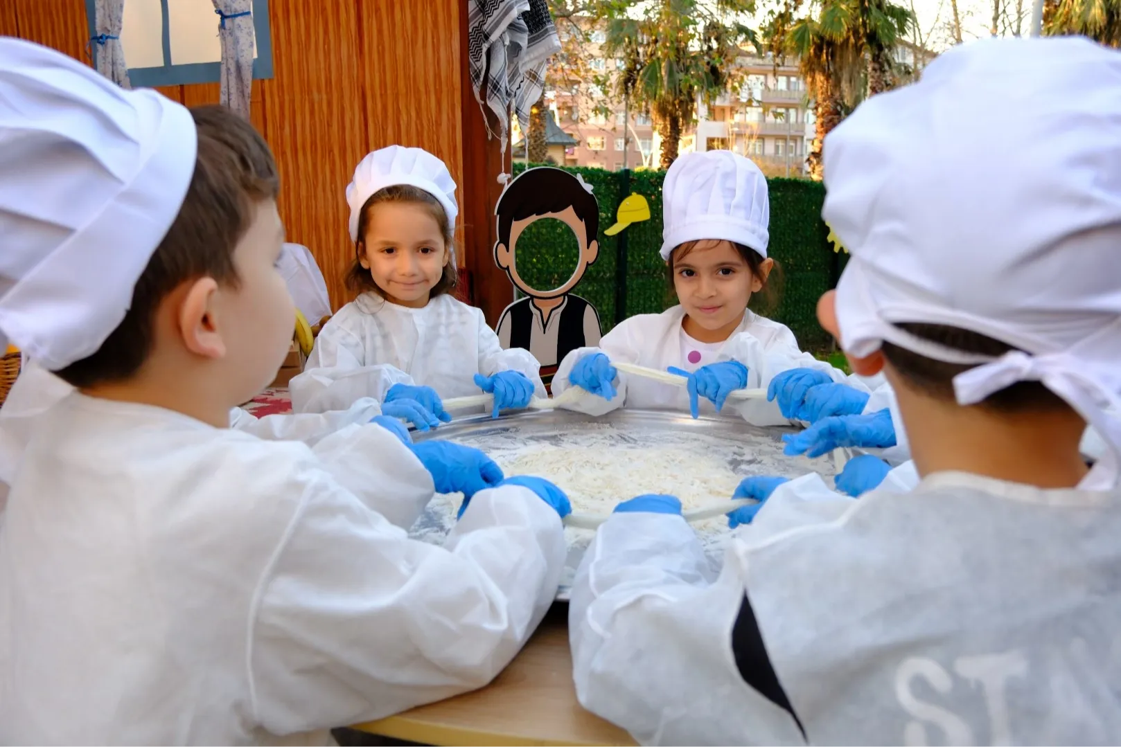 Pişmaniye çekimi ise etkinliğin en eğlenceli anlarından biri oldu. Minikler, etkinlikler kapsamında İzmit’in coğrafi işaretli lezzeti pişmaniyenin yapım sürecini uygulamalı olarak öğrendi. Öğretmenleri eşliğinde gerçekleştirilen çalışmada çocuklar, pişmaniyenin hazırlanış aşamalarını tek tek deneyimlerken, hem yöresel değerleri tanıma hem de el emeğinin önemini kavrama fırsatı buldu. Etkinlik, miniklerin yoğun ilgisi ve renkli görüntülerle tamamlandı.
