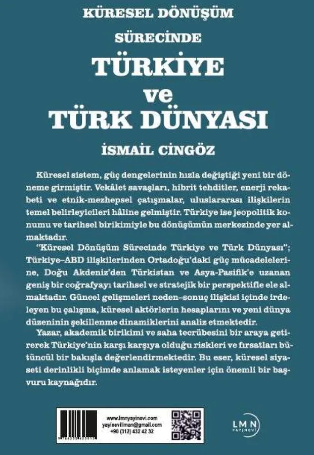 Küresel Dönüşüm Sürecinde Türkiye ve Türk Dünyası, bu karmaşık tabloyu anlamaya yönelik kapsamlı bir analiz sunmaktadır. Kitapta; Türkiye–ABD ilişkilerinin tarihsel arka planı, Ortadoğu’daki etnik ve mezhepsel çatışmalar, Doğu Akdeniz’deki enerji rekabeti, Türkistan coğrafyasındaki güç dengeleri ve Asya-Pasifik’te şekillenen yeni dünya sistemi bütüncül bir bakış açısıyla ele alınmaktadır.