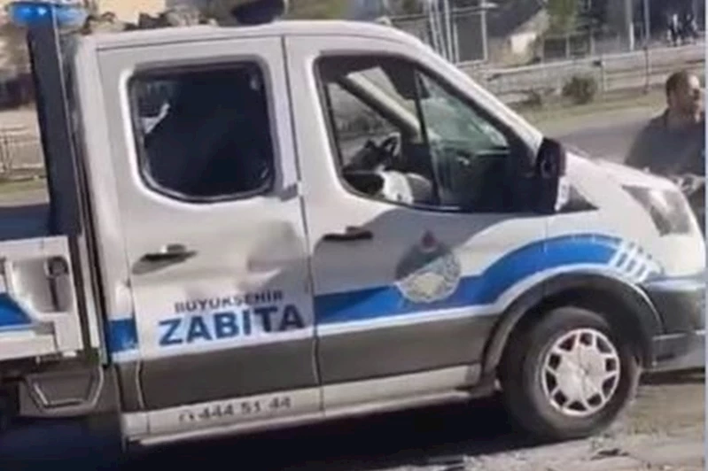 Yaşanan olayda bir kişinin kaldırım taşı ile Büyükşehir Belediyesi Zabıta Dairesi Başkanlığına bağlı bir araca saldırdı.