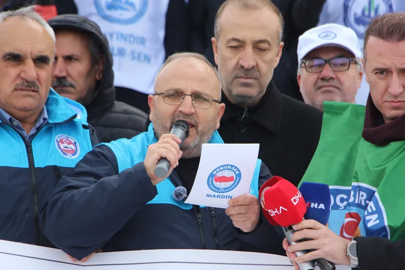 Memur-Sen Mardin İl Temsilciliği, 2026 yılının memurlar için ilk maaş gününde tüm bağlı sendikaların katılımıyla 15 Temmuz Parkı Meydanı'nda basın açıklaması düzenledi. Sendikalar adına basın açıklamasını Memur-Sen Mardin İl Temsilcisi Abdüsselam Demir okudu.