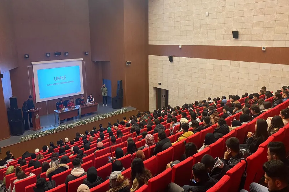 İki oturum şeklinde düzenlenen paramedik etkinliklerinin ilk oturumunda, Öğretim Görevlisi Murat Erten moderatörlüğünde Mardin (Ulusal Medikal Kurtarma Ekibi) UMKE personelleri, 6 Şubat depremi ile ilgili deneyimlerini öğrencilere aktardı.