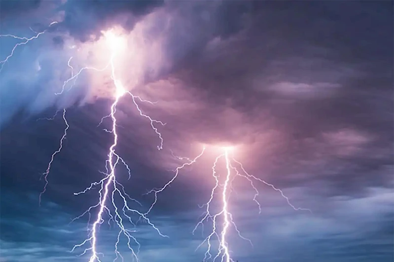Kentin farklı bölgelerine sağanak yağmurun ardından yıldırım düştü.