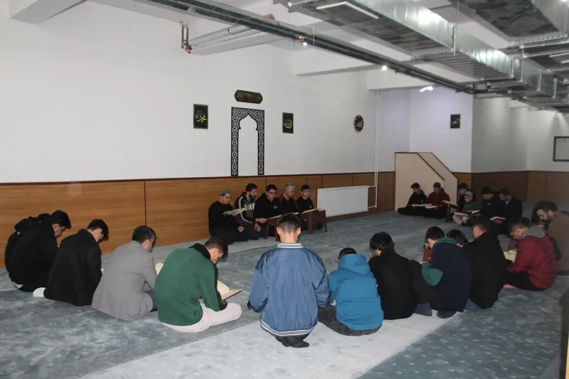 Artuklu Said Nursi İmam Hatip Lisesi'nde öğrenciler, mescitte öğle namazının ardından yoğun bir katılımla mukabele geleneğini devam ettiriyor.