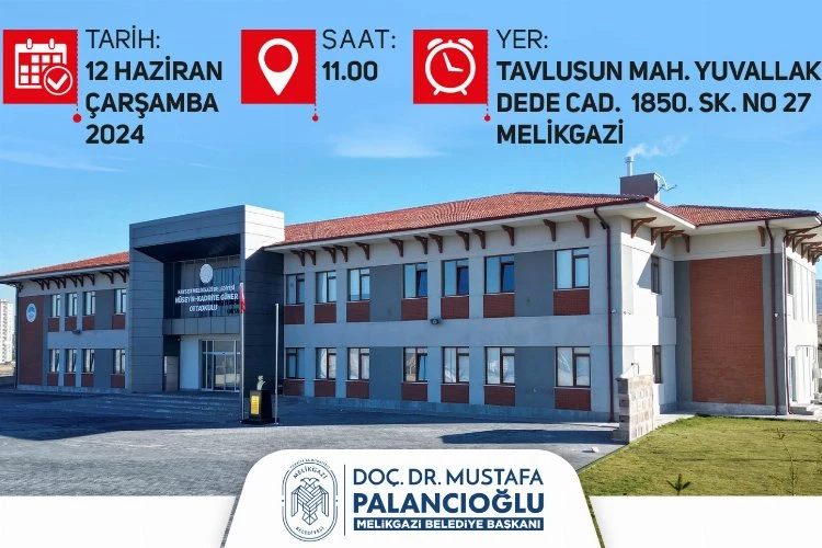 Melikgazi Belediyesi ve hayırsever iş birliği ile Tavlusun Mahallesi’nde hayata geçen Melikgazi Belediyesi Hüseyin-Kadriye Güner Ortaokulu 12 Haziran Çarşamba günü açılıyor.