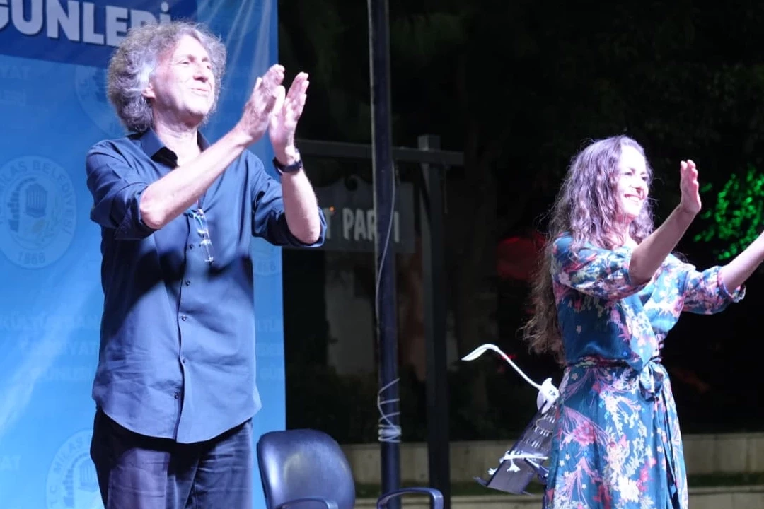Programı baştan sona takip eden Milas Belediye Başkanı Fevzi Topuz, etkinliğin sonunda sahneye gelerek iki sanatçıya plaket takdim etti.