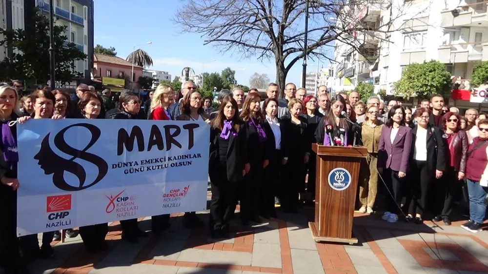 Aydın’ın Nazilli ilçesinde 8 Mart Dünya Kadınlar Günü dolayısıyla CHP İlçe Başkanlığı, Kadın ve Gençlik Kolları ile çeşitli sivil toplum kuruluşlarının katılımıyla bir etkinlik düzenlendi. İstasyon Meydanı’nda Atatürk Anıtı önünde gerçekleştirilen buluşmada kadın hakları, toplumsal eşitlik ve kadına yönelik şiddete karşı mücadele mesajları öne çıktı.