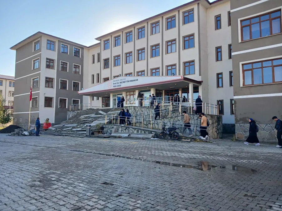 Erzurum Necmettin Erbakan Fen Lisesi’nde öğrenciler, yeni eğitim yılına çöken merdivenlerle başladı.