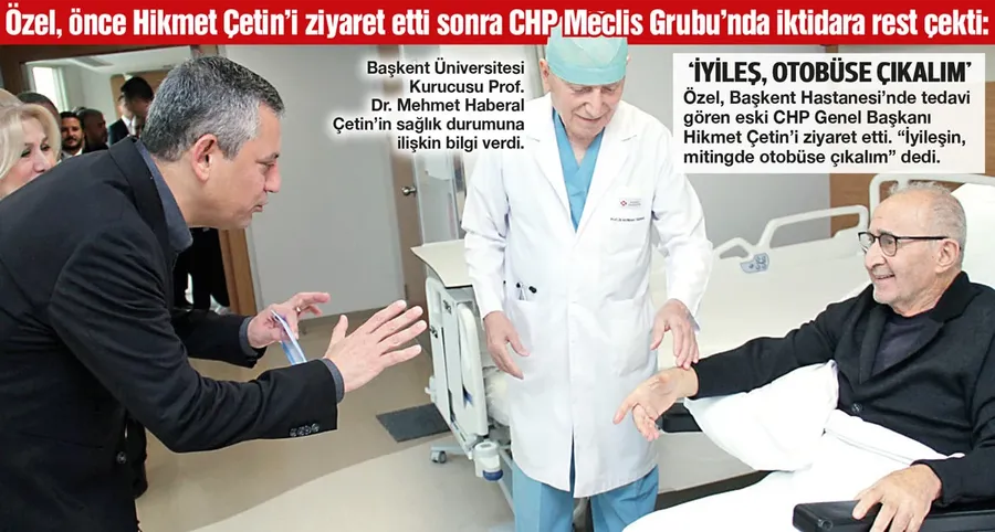 Özel, Çetin’e geçmiş olsun dileklerini iletirken, “Bir an önce iyileş ki mitinglerde birlikte otobüsün üzerine çıkalım. Sizin varlığınız bana güç ve onur veriyor” dedi.