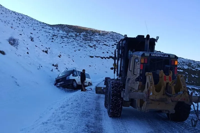 Pervari’de kar yağışı nedeniyle minibüs şarampole yuvarlandı