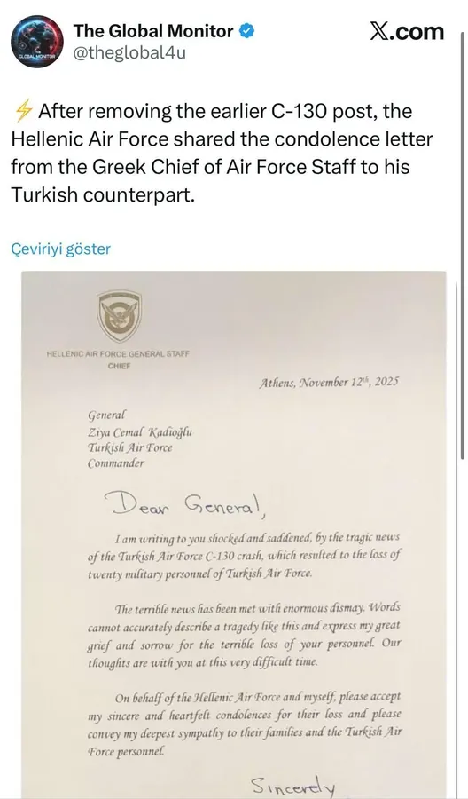 20 Türk askerinin hayatını kaybettiği bir kazanın ardından, Hellenic Air Force resmi X (eski Twitter) hesabından yapılan paylaşım büyük tepki çekti. Ölüm haberi hâlâ tazeyken “Fotos of the Day” başlığıyla yayımlanan C-130 tipi uçağa ait fotoğraflar, Türkiye’de sosyal medyada “saygısızlık” olarak yorumlandı.