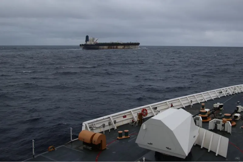El koyma, Atlantik Okyanusu'nda tankerin iki hafta süren takibi sonrasında gerçekleşti. Sahil Güvenlik, son saatlerde Latin Amerika sularında bir başka tankeri ikinci kez gözaltına aldı.