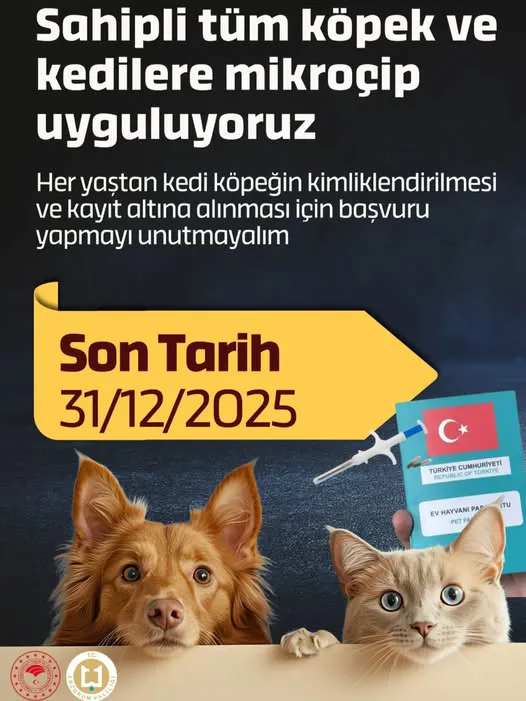 Sahipli kedi ve köpeklerin kimliklendirilmesi için son başvuru tarihi 31 Aralık 2025