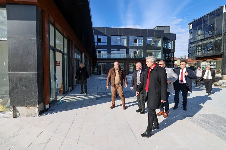 Başkan Yüce, tören öncesinde ve sonrasında ticaret merkezinde yürütülen çalışmaları inceleyerek katılımcılara proje hakkında bilgi verdi.
