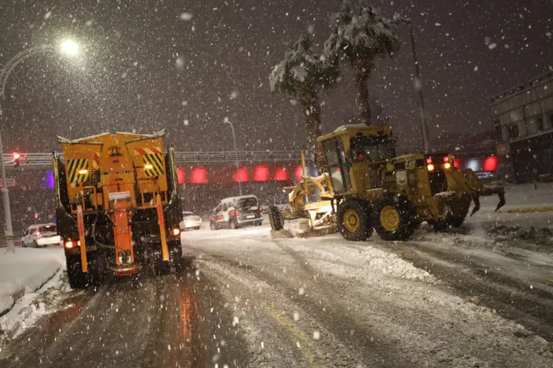 Büyükşehir Belediyesi, kar yağışının etkisini sürdürmesi nedeniyle çalışmalarına devam ederken vatandaşların zorunlu olmadıkça özel araçlarıyla trafiğe çıkmamalarını ve ekiplerin uyarılarını dikkate almalarını istendi.