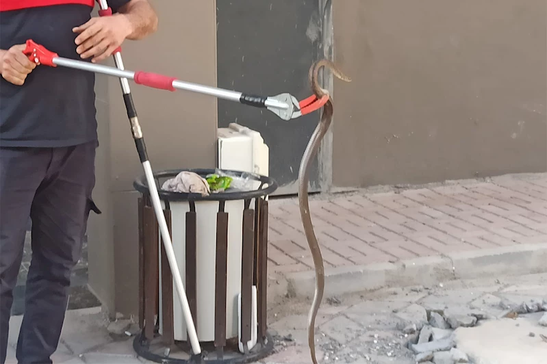 Yakalanan yılan, güvenli bir alana götürülerek doğaya bırakıldı.