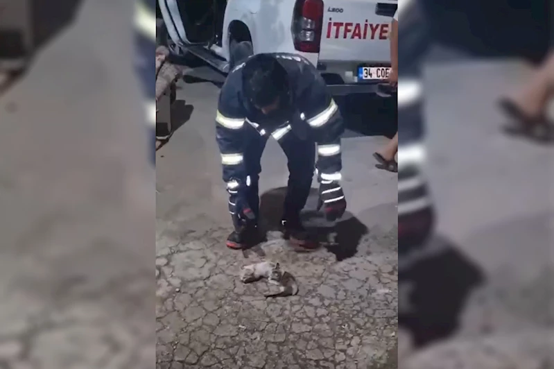Yaklaşık 3,5 metrelik boşluğa düşen yavru kedilerin sesini duyan ev sahibi, durumu yetkililere bildirdi.