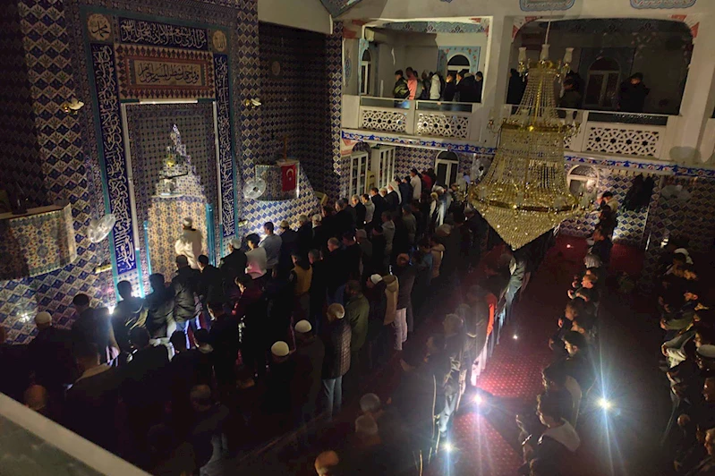 Kesinti nedeniyle Eset Efendi Camii ve bağlı bulunduğu Bağlarbaşı Mahallesi'nde karanlıkta kalan cemaat, namazı imamın sesiyle takip etti.