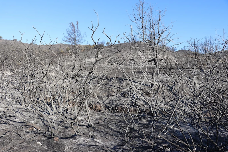Öte yandan söndürme çalışmalarının tamamlandığı ve onlarca dönüm ormanlık alanın yok olduğu yangının ardından geriye sadece kül yığınları kaldı. (İLKHA)