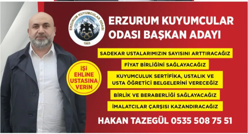 Yapmış olduğu sosyal sorumluluk kapsamındaki çalışmaları ve hazırladığı projelerle Taşmağazalar esnafının gözdesi konumunda olan, Taşmağazaları Koruma El Sanatları Değerli Metalleri Tanıtma ve Yaşatma Derneği Başkanı ve Kuyumcular Odası Başkan Adayı Hakan Tazegül yapmış olduğu açıklamada “Bizler kimseye sesimizi duyurmak amacında değiliz. Bizim asıl amacımız sektör esnafımızın sesini duyurmak, sıkıntılarını seslendirmek ve çözüm noktasında çareler aramak olup, adımlarımızı da o yönde atmaktayız. İşte bu yüzden Kuyumcular Odası Başkanlığı için adaylığımızı daha önceden açıkladığımızı, birbirinden kıymetli siz değerli esnafımızın içerisinden gelen arkadaşlarımızla yönetimimizi oluşturduğumuzu ve sizlere çok daha iyi bir şekilde hizmet edebilmemiz için rızalığını istemeye gelmiş bulunmaktayız” dedi…