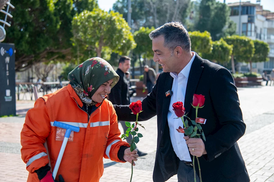 14 Şubat Sevgililer gününde vatandaşlarla bir araya gelen Başkan Kara’dan gül alan bir kadın, “Hayatımdaki ilk çiçeği başkanımızdan aldım. Çok samimiydi.” sözleriyle duygusal anlar yaşadı.