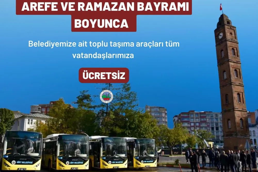 Siirt Belediyesi, Ramazan Bayramı dolayısıyla vatandaşların bayram ziyaretlerini daha rahat gerçekleştirebilmesi için toplu taşıma hizmetlerini ücretsiz hale getirdi.