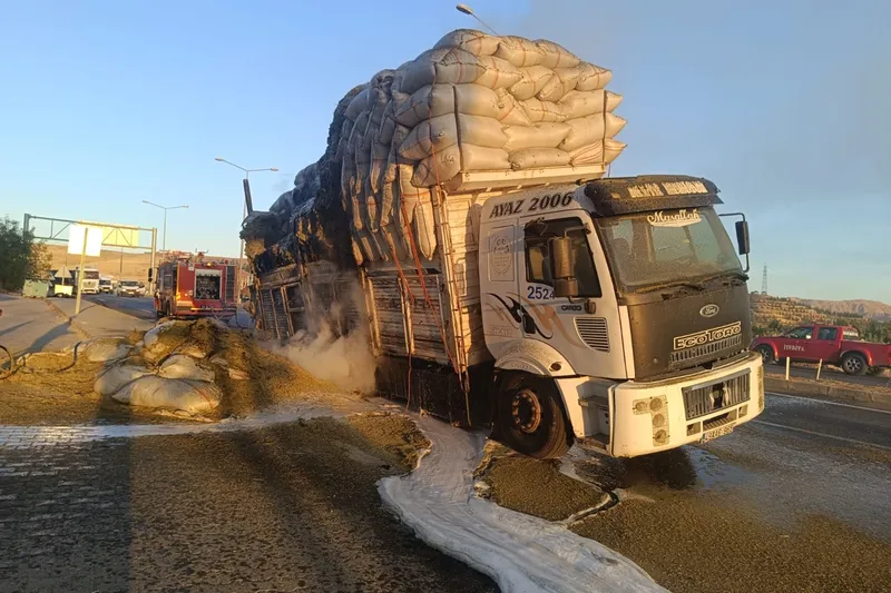 Siirt’te saman yüklü kamyonda yangın