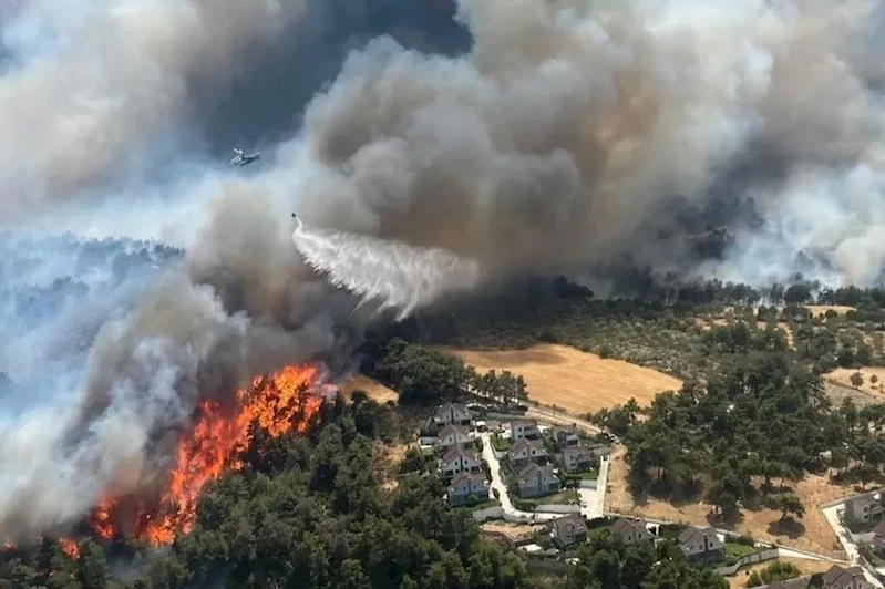 Yangına 6 hava aracı, 60 kara aracı ve 225 personelle müdahale ediliyor.