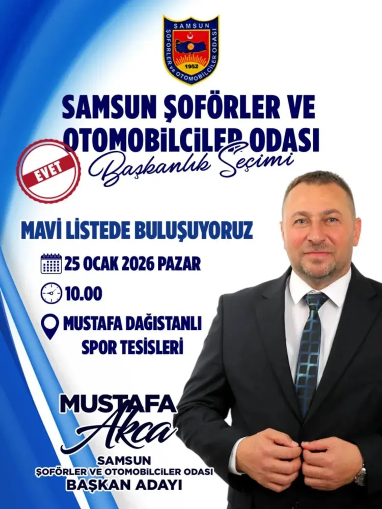 Samsun Şoförler ve Otomobilciler Odası Başkanlık Seçimi’nin, 25 Ocak Pazar günü Mustafa Dağıstanlı Spor Salonu’nda yapılacağı bildirildi.