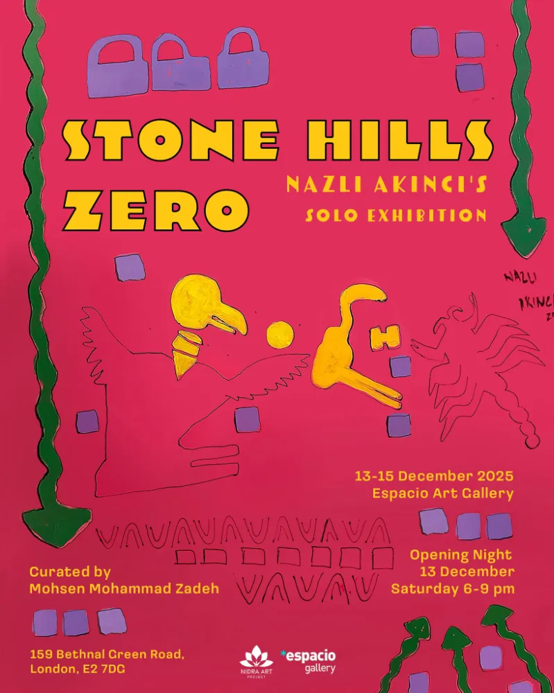 13–15 Aralık 2025 tarihleri arasında Londra’daki Espacio Art Gallery’de gerçekleşen STONE HILLS ZERO, sanatçı Nazlı Akıncı’nın Londra’daki kişisel sergisi olarak sanat çevrelerinde geniş yankı uyandırdı. Nidra Art Project organizatörlüğünde ve Mohsen Mohammad Zadeh küratörlüğünde düzenlenen sergi, Türkiye’den ve Birleşik Krallık’tan önemli isimleri bir araya getirdi.