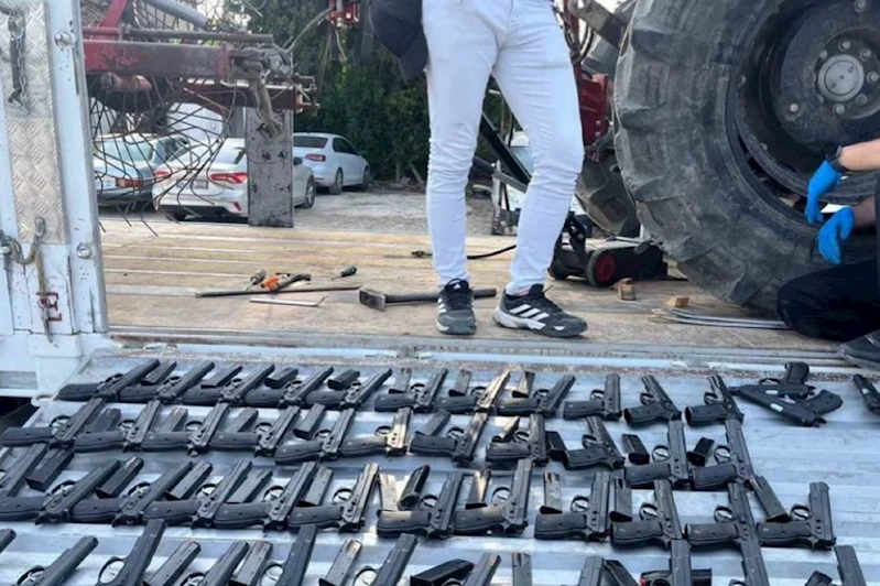 Takip edilen tır, Ceyhan ilçesi girişinde durduruldu. Tırda yapılan aramada, dorse kısmındaki traktör ve tarım ekipmanlarının içerisine zulalanmış 420 adet tabanca ele geçirildi.