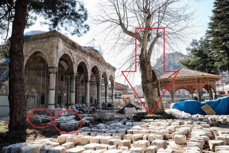 Avludaki Taşların Sırrı Cami avlusunda sıralı bir şekilde dizilen yüzlerce taş, ziyaretçilerin dikkatini çekiyor. Bu taşlar, depreme dayanıksız oldukları için restorasyon kapsamında minareden sökülen parçalardır. Her biri özenle numaralandırılarak dizilen bu taşlar, minaredeki yerlerini almak için gün sayıyor.