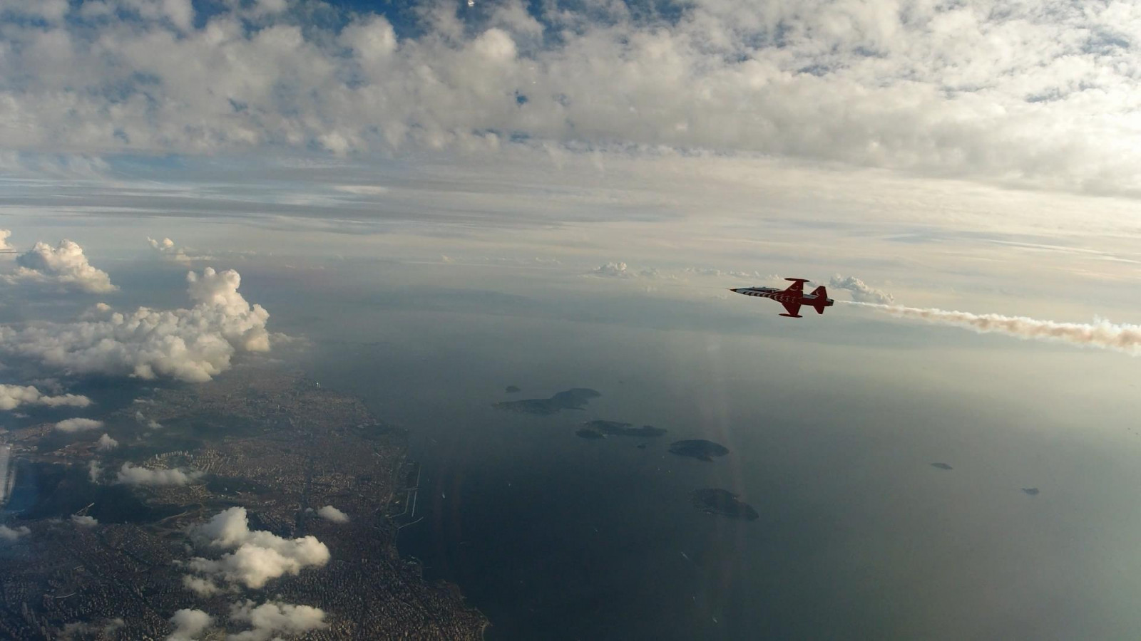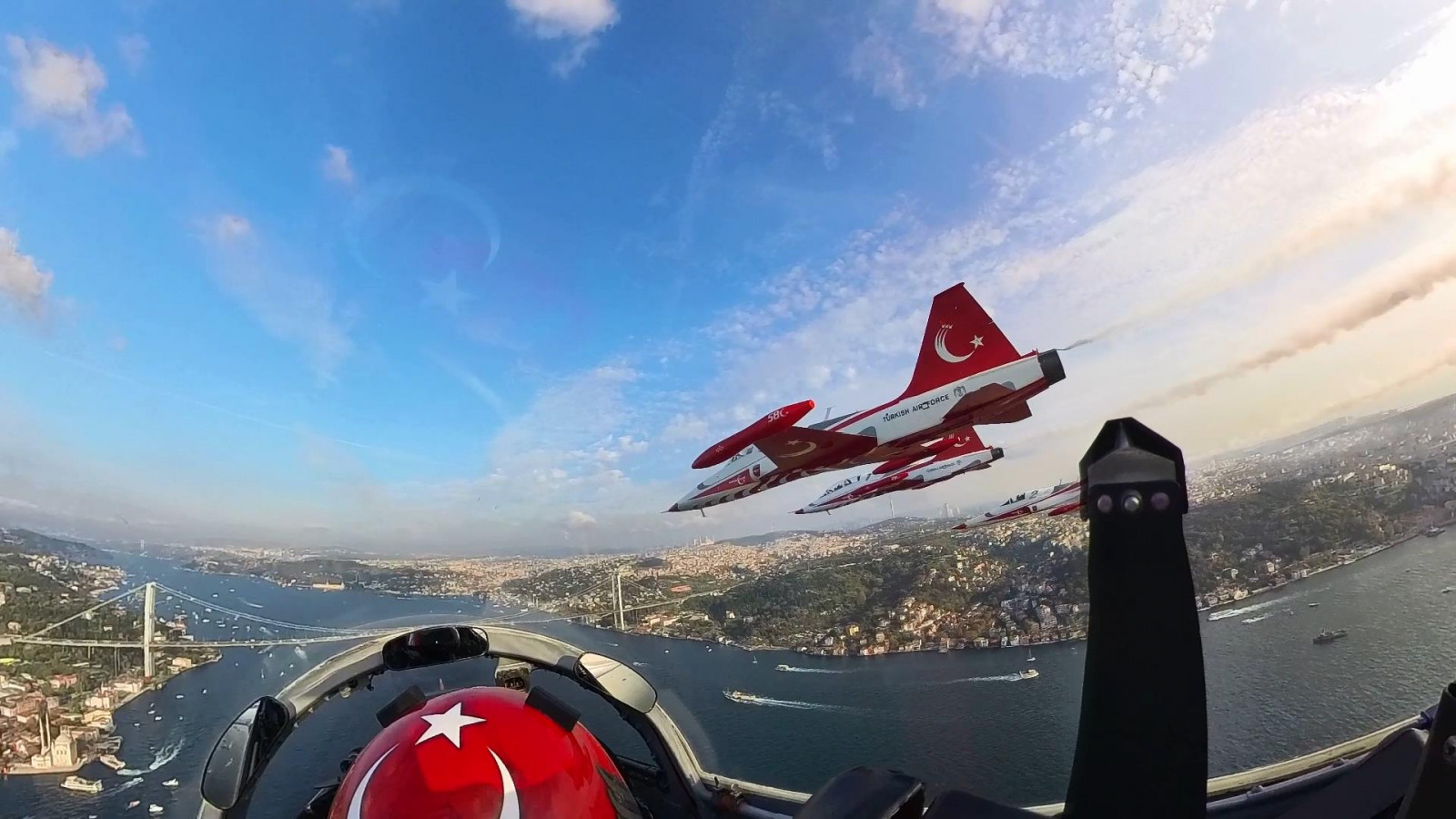 29 Ekim Cumhuriyet Bayramı ve Cumhuriyetin kuruluşunun 100. yılı nedeniyle İstanbul Boğazı'nda gösteri uçuşu yapan SOLOTÜRK ve Türk Yıldızları'nın kokpit içerisinden görüntüleri paylaşıldı.