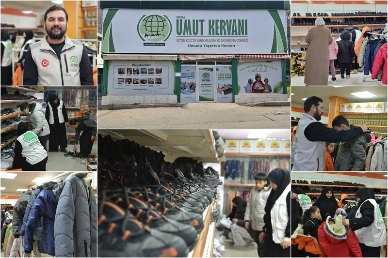 Soğuk kış günlerinin etkisini hissettirdiği bu dönemde, ihtiyaç sahiplerinin temel gereksinimlerine katkı sunmayı amaçlayan Bursa Umut Kervanı, sosyal market projesiyle hayırseverlerin destekleriyle temin edilen bot, mont ve çeşitli kışlık giysileri ailelere ulaştırdı. Yardımlar kapsamında yalnızca giyim desteğiyle sınırlı kalınmayarak, aile bütçelerine katkı sağlamak amacıyla gıda yardımları da yapıldı.