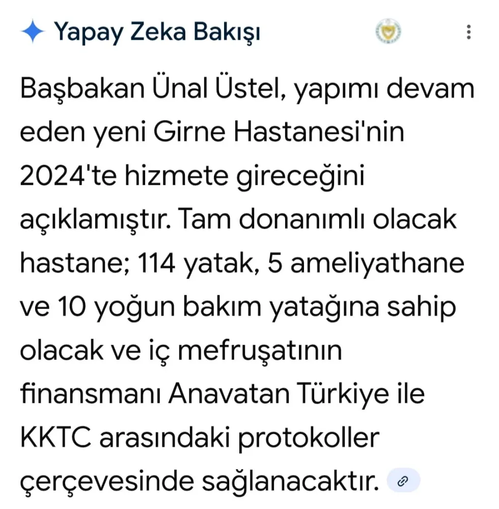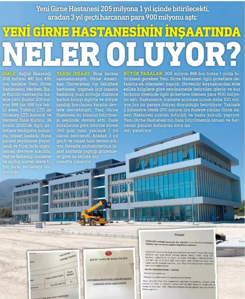 Oysa aynı dönemde, karkası dahil, sıfırdan inşaat olarak ihaleye çıkılan Girne Asker Hastahanesi, söz verildiği gibi 1 yılda 290 milyon TL'ye bitti ve 1.5 yıldır hasta kabul ediyor.