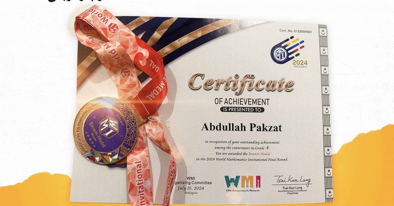 Uygur Türkü öğrenci Abdullah Pakzat, Malezya’da 13 Temmuz 2024 tarihinde gerçekleştirilen ve 22 ülkeden seçilen matematikte başarılı öğrencinin katıldığı World Mathematics Invitational (Dünya Matematik Turnuvası) yarışmasında Türkiye’yi temsil etti ve bronz madalya kazandı.