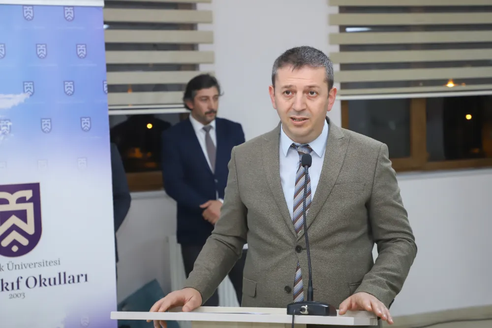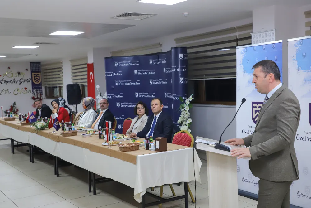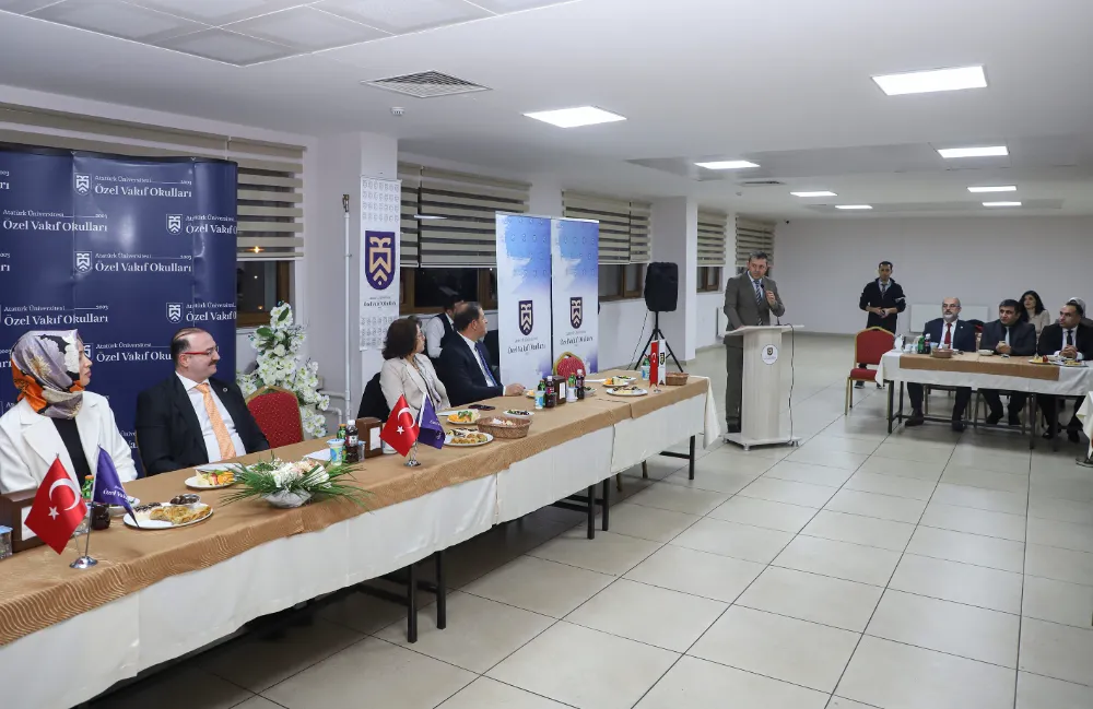 Rektör Hacımüftüoğlu, konuşmasında ayrıca Atatürk Üniversitesi Özel Vakıf Okullarının eğitim alanındaki başarılı çalışmalarına ve öğretmenlerin bu sürece olan katkılarına da değindi. Hacımüftüoğlu: “Özel Vakıf Okullarının, kreşten liseye kadar geniş bir yelpazede eğitim-öğretim faaliyetlerini bir bütünlük içinde sürdürmesi, sizlerin fedakârca emekleriyle mümkün olmaktadır. Öğrencilerimizin kalplerine ve zihinlerine bıraktığınız izler, okulun başarısını taçlandırmaktadır. Bu vesileyle, bu eğitim yolculuğunda emeği geçen tüm yöneticilerimize ve en büyük teşekkürü hak eden, öğrencilerimize yol gösteren siz değerli öğretmenlerimize şükranlarımı sunuyorum. Bugün burada, sizlerle birlikte olmaktan büyük mutluluk duyuyorum. Bu anlamlı günde, Atatürk Üniversitesi olarak, eğitim ve öğretime verdiğimiz değeri bir kez daha vurgulamak isterim. Sizlerin özverili çalışmaları olmadan bu vizyonu gerçekleştirmek mümkün değildir. 24 Kasım Öğretmenler Gününüzü içten dileklerimle kutluyorum. Ülkemizin daha aydınlık bir geleceğe doğru yol alması sizlerin sayesindedir. İyi ki varsınız” diye konuştu.