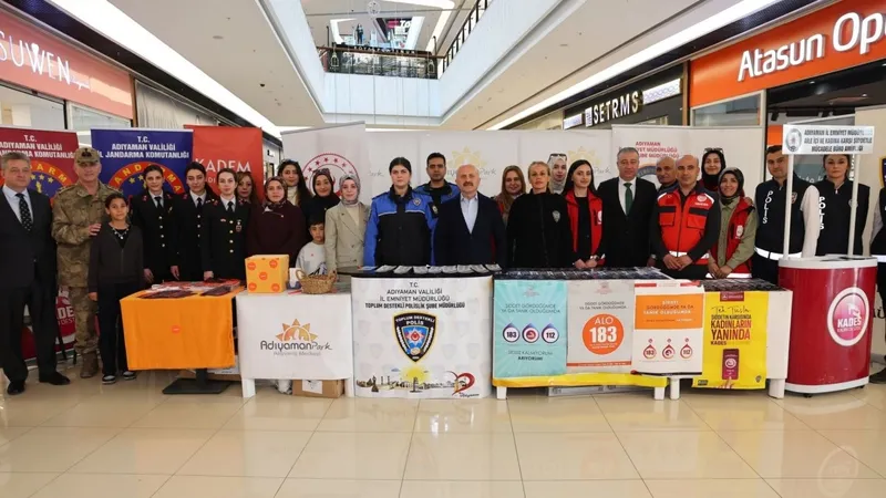 Adıyaman Valisi Dr. Osman Varol, İl Emniyet Müdürlüğü, İl Jandarma Komutanlığı, Aile ve Sosyal Hizmetler İl Müdürlüğü ile KADEM tarafından 8 Mart Dünya Kadınlar Günü dolayısıyla Park AVM'de açılan farkındalık standını ziyaret etti. Açılan stantta bilgilendirici broşürleri inceleyen Vali Varol, yetkililerden kadınların toplumdaki yeri, hakları ve toplumsal farkındalık konularında yürütülen çalışmalar hakkında bilgi aldı.
