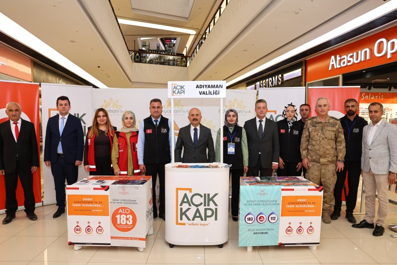 Adıyaman Valisi Dr. Osman Varol, Açık Kapı Şube Müdürlüğü ve Aile ve Sosyal Hizmetler İl Müdürlüğü tarafından Park AVM'de "Aile İçi ve Kadına Yönelik Şiddetle Mücadele" kapsamında açılan bilgilendirme standını ziyaret etti.