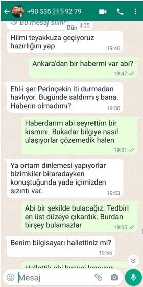 Bu yazışmalarda, imha edilen delilleri, YÖK’e dair değerlendirmeleri, Rektörün Cumhurbaşkanına taktığı isimlendirme ve Vatan Partisi Genel Sekreteri hakkındaki suikast planları, Ankara Emniyeti hakkında, Ankara Cumhuriyet Başsavcılığı hakkında, yurt dışı bağlantıları üzerine, TRT ve Anadolu Ajansı içindeki faaliyetlerine kadar her şey bulunuyor. Bunları önümüzdeki günlerde tek tek açıklayacağız.