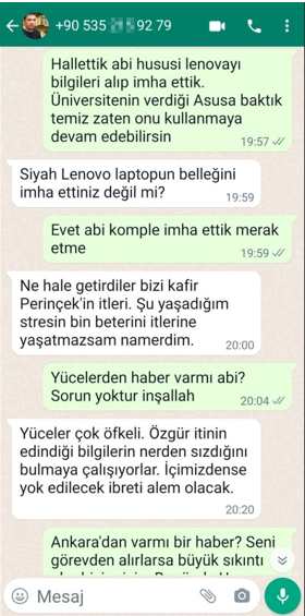 Hilmi: “Hallettik abi hususi lenovayı bilgileri alıp imha ettik. Üniversitenin verdiği Asusa baktık temiz zaten onu kullanmaya devam edebilirsin”