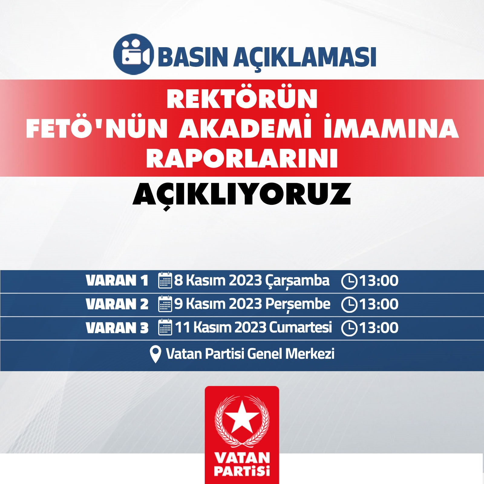 "Üniversite Rektörü’nün, FETÖ’nün Amerika’daki Akademi İmamına yazdığı raporları Vatan Partisi Genel Merkezi’nde açıklıyoruz.