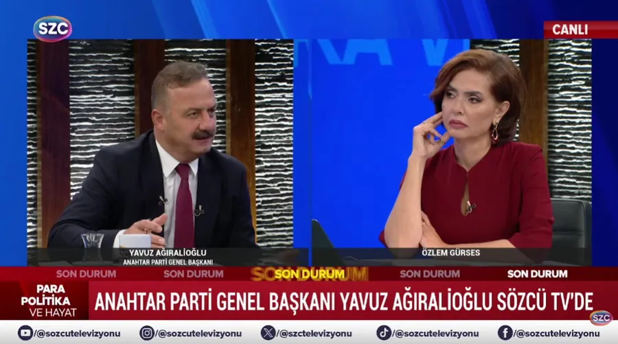 Anahtar Parti Genel Başkanı Yavuz Ağıralioğlu, Sözcü TV canlı yayınında gazeteci Özlem Gürses’in sunduğu Para Politika ve Hayat programına konuk oldu. Gündeme ilişkin değerlendirmelerde bulunan Ağıralioğlu, konuşmasında özetle şunları söyledi.