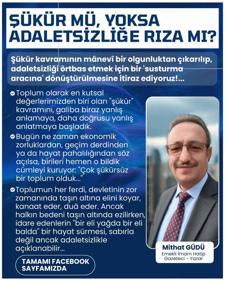 Şükür kavramının mânevî bir olgunluktan çıkarılıp, adaletsizliği örtbas etmek için bir 'susturma aracına' dönüştürülmesine itiraz ediyoruz!...