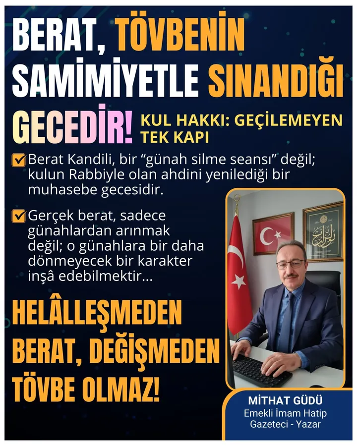 Berat Kandili, bir “günah silme seansı” değil; kulun Rabbiyle olan ahdini yenilediği bir muhasebe gecesidir. Diğer günlerdeki savrulmayı bu geceyle telâfi edeceğini sananlar, aslında sadece kendilerini aldatırlar. Çünkü Allah Teâlâ, takvimin belli gecelerine sıkıştırılmış bir dindarlığı değil; istikâmet üzere sürdürülen bir hayatı talep eder.