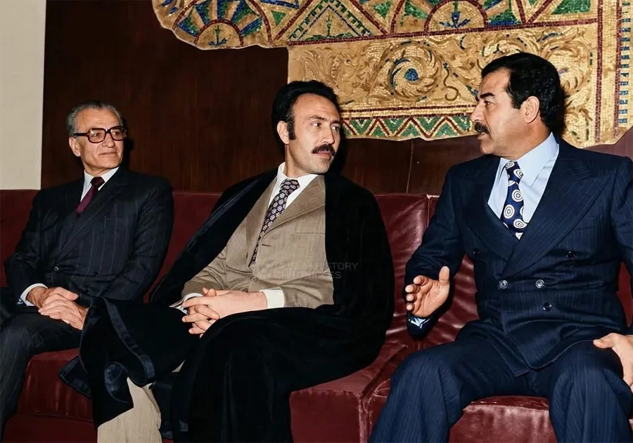 (SOLDAN SAĞA İRAN ŞAH’I PEHLEVİ, CEZAYİR DEVLET BAŞKANI HUARİ BUMEDYEN VE IRAK KOMUTA KONSEYİ BAŞKAN YARDIMCISI (DEVLET BAŞKAN YARDIMCISI) SADDAM HÜSEYİN.